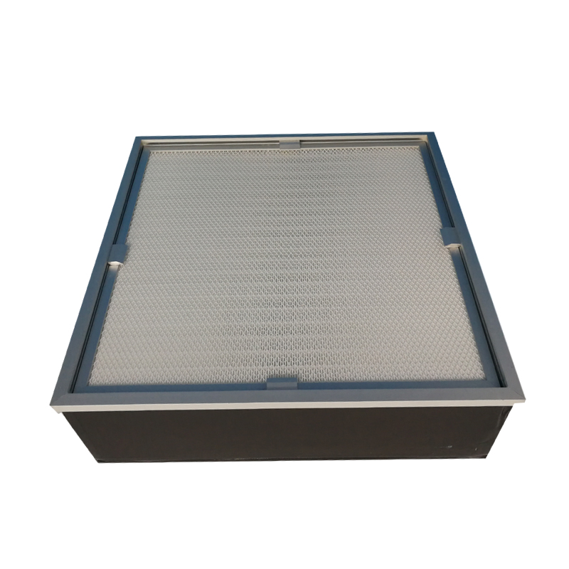 室内可更换式高效率空气过滤箱-崁板型,配合天花板及悬吊装置的使用,可直接与风管之软管组合;本体经阳极处理,滤网含保护网,内部设计,以垫片式或U槽凝胶式滤网配合,且换装滤网不用工具,可防止二度污染;备有四只吊勾,以固定框架,体积小、重量轻,安装容易,节省施工时间,适用于无尘室或其它各类1~100,000等级洁净场所,特殊尺寸及规格可依客户需求制作
